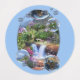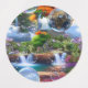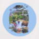 Mágica pelas bolhas através das vistas do meu pavimento de jardim com muitas plantas floridas e suculentos a olhar para duas montanhas no mar e as cachoeiras em papelaria de convite personalizado.