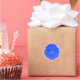 Esta bonito folha de adesivos redondos apresenta uma fotografia de uma flor de marigold que foi manipulada para torná-la uma espantosa cor azul brilhante. A flor se senta sobre uma cinza.