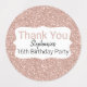obrigado de aniversário de rosa dourado que você rotula. O design apresenta um fundo brilhante rosa dourado e o texto "Obrigado" em brilho rosa dourado. Também, o seu nome personalizado.