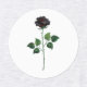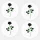 Rosa preto simbólico, desenhado artisticamente, com caules verdes e folhas sobre fundo branco. Rosa preto.