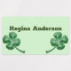 Uma esmeralda enjoalhada com o seu nome num fundo verde.