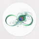 O símbolo do infinito com uma pena brilhante, verde, de pavão artístico sobre um fundo branco. Tatuagem.