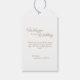 Esta simples etiqueta de presente de casamento de caligrafia dourada traz um luxo elegante, mas moderno, a um casamento minimalista e mais tradicional ou formal. A caligrafia casual permite um sentimento antigo, enquanto o design neutro de classe pode ser combinado com quaisquer aspectos únicos da celebração do casamento. Use esta etiqueta para cestos ou favoritos para festas de boas-vindas!