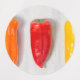 Pimentos de cor diferente colocados num conselho de corte Imagem © Angelika Stern