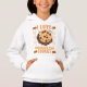 O texto diz que eu adoro biscoitos de chocolate com chip. Com um biscoito de chocolate no centro que é cercado por uma corda de ouvidos e nos 4 cantos a palavra amor.
