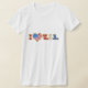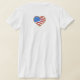 Uma bandeira e coração americanos se combinam para fazer este gráfico patriótico que diz "Eu amo os EUA". Há um impressão companheiro na parte de trás da camiseta.