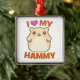 Este ornamento adorável do feriado para as pessoas que amam hamster é moldado no metal colorido prata e apronta-se para pendurar por uma fita vermelha. O design lê, "mim ama (coração) meu Hammy" com uma ilustração adorável do hamster.