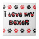 Eu amo meu pugilista! Um design preto-branco-e-vermelho corajoso que caracteriza lotes dos corações e dos impressões da pata do cão. Excelente para algum proprietário do pugilista que amar seu cão.
