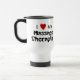 Esta caneca diz, "mim ama meu terapeuta da massagem" em uma pia batismal do divertimento, com as mãos que fazem parte das letras, e um coração em vez do amor da palavra.