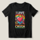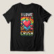 A design de camiseta para "I Love My Crush" apresenta um tema lúdico e romântico com letras arrojadas e vibrantes. A frase "I Love" é escrita em uma fonte grande, atraente, com a palavra "Crush" em um estilo diferente, possivelmente com um símbolo cardíaco ou embelezamentos lúdicos. As cores brilhantes como vermelho ou rosa para os elementos cardíacos contrastam com o fundo, fazer-o como design divertido e jovem. O olhar geral é relâmpago, perfeito para expressar afeto com um toque de capricho.