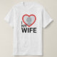 Crie o seu I Love My Wife significa Photo Text T-Shirt com esta camisa moderna e engraçada modelo com uma legal fonte sans serif e uma foto da esposa num enorme coração vermelho. Adicione sua própria foto, seu nome ou qualquer texto personalizado. A design da camiseta "Eu amo minha esposa" é limpa, engraçada e simples. Faça seu próprio presente único para seu marido ou use-o para impressionar sua esposa para Dia de os namorados noite, aniversário ou qualquer ocasião especial, com isso eu amo meus camisetas de esposa!