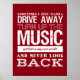 Um legal poster para amantes de música. Lindas citações musicais. Às vezes, eu só quero ir embora, aumentar a música, me perder no meu próprio mundo e nunca olhar para trás. Escolha sua própria cor de fundo para o poster.