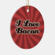 Este produto foi feito para todo o amante do bacon! Caracteriza um fundo do redemoinho do bacon, com o texto "que eu amo o bacon" na parte superior.