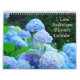 Eu amo CALENDÁRIOS das flores do Hydrangea, calendários das FLORES do HYDRANGEA, calendário das flores dos Hydrangeas, calendários do presente, presentes do Natal, ARTE do ESCRITÓRIO, calendários incorporados de Git do cliente, calendários dos trabalhos de arte, Hydrangeas azuis roxos cor-de-rosa brancos, calendários de parede florais botânicos da flor, paisagens do jardim. COLEÇÕES DE BELAS ARTES DE BASLEE TROUTMAN.