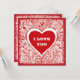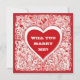 Um cartão de saudação de namorados de casamento vermelho e branco, com "I Love You on the front and Will You Casado Me?" no verso. Para alterar o texto, clique no botão personalizar. Esta design foi criada com IA.