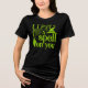 Este clássico design do Dia das Bruxas apresenta a frase assustadora "Eu Coloquei um Feitiço em Você" em uma fonte ousada e inspirada em gótica. O esquema preto e branco melhora a atmosfera estranha, fazer o design perfeito para a época das bruxas. Acompanhar o texto são elementos emblemáticos, como o chapéu de bruxa pontiagudo, vassoura, teia de aranha, e uma aranha minúscula, todos arranjados para criar uma composição de feitiçaria. O sutil detalhamento de pontos em torno do texto adiciona um toque de encanto mágico.