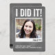 Convide familiares e amigos para a festa de formatura de seu ente querido com este convite ou anúncio moderno da PiPo Press. Um ousado "EU CONSEGUI" em tons neutros de lousa com uma foto de abertura diz a todos o quanto você está orgulhoso de seu formando. Perfeito para um convite de festa ou um anúncio de formatura do ensino médio, universidade ou programa de pós-graduação. Personalize com o nome da sua escola em uma escolha de cores e este convite está pronto para ser enviado!