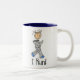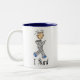 Uma figura da vara da menina vestida no terno da corrida funciona e o texto lê-me "funciona" em uma caneca customizável do tema da malhação.