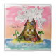 Digam "Eu Lava-Te" com um vulcão de desenho animado giro a erupir-se numa ilha tropical no fundo do mar azul. Edite o texto para criar sua própria mensagem personalizada. Perfeito para o Dia de os namorados ou aqueles momentos especiais de amor.