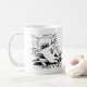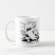 Uma caneca com uns desenhos animados que mostram à opinião traseira um organista que joga frantically afastado no órgão com o subtítulo "eu preferencialmente estaria jogando meu órgão" escrito ao lado do fundo e a imagem e o texto brancos no preto.
