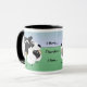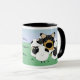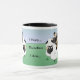 O subtítulo lê, "mim reune… Conseqüentemente eu sou…", caracterizando um Collie liso da Tri Cor cercado por seu rebanho dos carneiros. A parte traseira da caneca igualmente tem uma opinião da imagem invertida do que aparece na parte dianteira, mostrando a retaguarda do Collie liso e de seus carneiros.