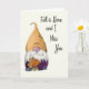 Com viagem limitado devido à COVID, não conseguimos ver todos aqueles que normalmente visitaríamos. Envie a alguém que você perde este cartão para avisá-los que você está pensando neles, e sentir falta deles. Cartão de vazio, há muito espaço para os seus próprios sentimentos. Fall Gnomo com folhas é um impressão de uma das minhas pinturas de aquarela.