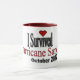 Eu sobrevivi à caneca de café de Sandy do furacão. Este design está disponível em toda a caneca do estilo, caneca de cerveja, caneca de viagem, caneca do fosco da sua escolha. Apenas escolha a caneca do estilo, etc., e personalize-os como você deseja.