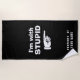 Eu sou com a toalha de praia engraçada estúpida para casais. Toalhas de praia cómicos com citações do divertimento e sinal apontar. Ideia personalizada do presente para ele e ela. Ideias originais do presente para homens e mulheres. Tamanho grande para a praia ou a piscina. Criar suas próprias toalhas da extra grande para o casal, os melhores amigos, o aposentado, pessoa aposentada, pensionista, família, marido e esposa, trabalhador do co, colega, chefe, empregado, mamã, pai, irmã, irmão, tia, tio, vovô, avó, gerente, treinador, trabalhador de escritório, sócio, filho, filha, veraneante, casal, weds recentemente, os newlyweds, os noivos, o Sr. e a Sra., modelo moderno da tipografia do divertimento dos honeymooners etc. com mão e dedo apontando entre eles. Personalize com seu nome na parte inferior. Cor preto e branco ou feita sob encomenda do fundo. Design da piada.