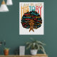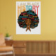 Eu sou Poster da História Negra Esta imagem apresenta uma ilustração estilizada de uma pessoa com olhos fechados e mãos em uma oração ou posição meditativa. O cabelo da pessoa é retratado como uma afro cheia de várias palavras positivas em diferentes cores e fontes. Acima da ilustração, o texto diz "I AM BLACK HISTORY" em letras grandes e negrito. Esta imagem celebra lindamente a história e a cultura negras ao destacar atributos e afirmações positivos a ela associados. É poderoso e inspirador.