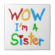 Design de texto multicores colorida WOW Eu sou uma camiseta Irmã, capuzes, canecas, botões, cartões, adesivos, guardas, ornamentos, chaveiros e outros presentes de excelente e roupa para irmãs!