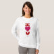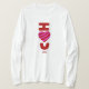 Vocês podem admirar meu desenho de Dia de os namorados e desenho romântico que eu chamo, "Eu te amo", de um coração vermelho e rosa listrado, adicionado à camisa de manga longa das mulheres.