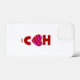Vocês podem admirar meu desenho de Dia de os namorados e desenho romântico que eu chamo, "Eu te amo", de um coração vermelho e rosa listrado, adicionado a este Mini caso do Apple iPhone 13.