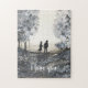 Eu te amo quebra-cabeça. Ilustração de casal de amor. Eu te amo tanto, aniversário de casamento, presente de casamento, presente de natal, pintura de aquarela de cena de inverno.