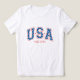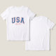 Design patriótico em negrito com um emblema "EUA" em forma de escudo. Inspirada pela bandeira americana com estrelas, listras e orgulho. Perfeito para celebrar liberdade e espírito nacional.