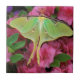 EUA, Pensilvânia. Luna moth em clematis rosa