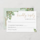 Cartão de RSVP Botânico de Eucalipto Elegante. Este cartão de RSVP elegante apresenta belos ramos de folhas de eucalipto em verde e dourado pintados à aguarela e uma fonte serifada sofisticada em dourado e cinza. No verso, "rsvp" é escrito em dourado como uma escrita elegante num fundo verde sage com um toque de eucalipto verde e dourado. Você pode alterar todas as cores do texto, a cor da moldura da foto e o fundo entrando na ferramenta de design ("clique para personalizar mais" abaixo das caixas de personalização de texto). No verso, você pode alterar a cor do texto e a cor do fundo para qualquer outra cor que desejar, novamente entrando na ferramenta de design.