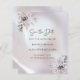 Nossa carta de orçamento "Salve a data" apresenta uma textura de pérolas brilhante decorada com delicadas flores de rosa e anêmona. No interior do buquê floral encontram-se folhas pastéis e ramos de eucalipto em pérola. O efeito geral é um tanto ou quanto etéreo e muito romântico. A ilustração de texto "Salvar a Data" é definida em uma fonte encantadora de script e todos os outros textos na parte frontal e traseira da placa podem ser facilmente personalizados por você no modelo. Este design Save the Date também está disponível como cartão postal, uma placa simples 5 x 7 e um ímã. NOTA: Se você quiser comprar envelopes que ajustado o formato de papel "orçamento", basta clicar no menu suspenso que diz "Selecione uma opção de envelope".