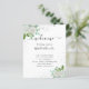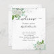 Fundo branco elegante, decorado com flores brancas e de cor aquosa, verde eucalipto e pó cinzento falso prateado. Personalize e adicione seus nomes e sua linha do dia do casamento.