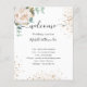Fundo branco elegante, decorado com um verde floral branco de cor aquosa, verde de eucalipto, folhagem de ouro e pó dourado falso. Personalize e adicione seus nomes e sua linha do dia do casamento.