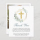 Um elegante funeral e um cartões de agradecimentos memorial de orçamento, com ilustração aquática de uma simples cruz dentro de ouro, uma coroa geométrica de ouro, enfeitiçada com verde-sábio eucalipto verde e "Obrigado" em um roteiro de caligrafia verde-sábio. Personalize seu obrigado e adicione uma citação inspiradora ou passagem bíblia. No verso, adicione uma foto do seu amado, o nome e a data de nascimento e morte.