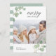 Compartilhe cartões de natal com esses Cartões de foto de Natal chic apresentando sua foto favorita horizontal ou orientada à paisagem, enquadrada no topo e no fundo por folhas pintadas de eucalipto com aquarela em verde pastel. "Feliz Natal" aparece no topo direito numa mistura elegante de caligrafia e letras modernas. Personalize com sua saudação/aprovação personalizada e nomes no canto inferior esquerdo.