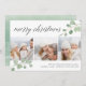 Cartão de férias festivo apresenta folhas de eucalipto em aquarela verde-sage pastel adornando três de suas fotos quadradas favoritas dispostas lado a lado em um formato de colagem. "Feliz Natal" aparece no topo em tipografia de letra manuscrita. Personalize com sua saudação personalizada e nomes no canto inferior direito.