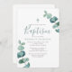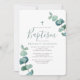 Um moderno convite batizante de eucalipto verde. **LEIA ANTES DE ENCOMENDAR** Se você fizer alterações na forma ou no tamanho ou escolher outro produto e o design for cortado de alguma forma ou não parecer direito na página, você precisará usar o Serviço de Design ao Vivo para que alguém ajuste o layout para você, a menos que você se sinta confortável fazendo isso sozinho. Não há nenhuma verificação manual ou intervenção entre a colocação do pedido e a impressão, portanto o que você vê na tela é o que será impresso e enviado a você. Com isso em mente, por favor, verifique também triplamente se há erros de ortografia ou informações incorretas antes de fazer seu pedido.