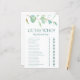 Este simples, minimalista e moderno eucalipto Adivinha Quem? O jogo de chá de panela é perfeito para qualquer chá. Este jogo fácil e divertido traz muitas risadas a qualquer chá de panela! Ele definitivamente quebrará o gelo e fará com que todos falem e riam. Basta dar uma folha a cada convidado (não se esqueça das canetas) e deixar a diversão começar! Ficará surpreso com quantas pessoas sabem das respostas. Para tornar este jogo de chá de panela seu, basta selecionar Personalizar este modelo e digitar o nome da noiva e o nome do noivo.