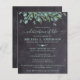 Funeral Rustic Memorial / Celebração Do Convite À Vida. Estes convites fúnebres apresentam um elegante e elegante verde botânico eucalipto na design de ardósia do quadro. Personalize esta celebração do convite ao funeral de vida com o nome e datas dos seus entes queridos, detalhes do evento. COPYRIGHT © 2021 Judy Burrows, Black Dog Art - Todos Os Direitos Reservados. Eucalyptus Comemoração Do Invit De Vida