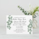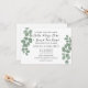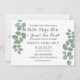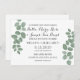 O belo convite apresenta novas folhas verdes de eucalipto sobre fundo branco limpo na frente e no verso. Perfeito para o casamento de primavera, verão, ao ar livre ou verde.
