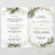 Folhas de eucalipto exuberantes, quadro geométrico dourado, flores amarelas, folhas de ouro são alguns dos elementos que compõem esse programa de casamento. Se precisar de ajuda para personalizar isto, por favor, não hesite em contactar.