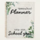Cobrir de design de folha de eucalipto simples e chic com fundo branco antigo. Planejar todo o ano escolar.