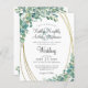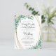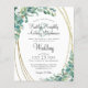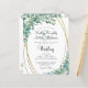 Convites de casamento botânico modernos e elegantes impressos em papel leve, ideais para orçamentos conservadores e/ou entrega manual a convidados com eucalipto verde e sotaque dourado e escrita elegante no estilo caligrafia e texto em uma cinza de carvão suave. Entre em contato com o designer por meio do Zazzle Chat ou makeitaboutyoustore@gmail.com se você quiser que este design seja modificado, em outro produto ou em itens de coordenação.