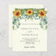 Um fundo de cor marfim decorado com girassóis, eucalipto verde. Personalize e adicione seus nomes e detalhes da festa. 1 folha = 1 convite impresso de borda a borda.
